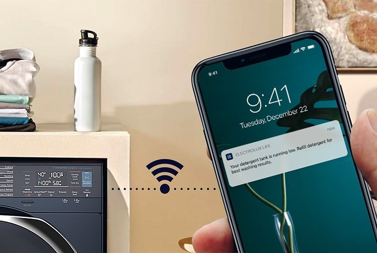 ควบคุมและสั่งการซักผ้าของคุณอย่างสะดวก ง่ายดาย และมีประสิทธิภาพผ่านแอปพลิเคชั่น Electrolux Life ที่มีข้อมูลการดูแลเสื้อผ้า เช่น การขจัดคราบฝังแน่น การจัดตารางการซักผ้าโดยเปรียบเทียบกับพยากรณ์ อากาศ โดย Care Advisor ในแอปพลิเคชั่นจะส่งข้อมูลและสั่งการไปยังเครื่องซักผ้า รวมทั้งใช้ในการควบคุมปริมาณน้ำยาซักผ้าของระบบ AutoDose อีกด้วย